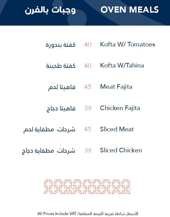 منيو مطعم روابي الشام دبي